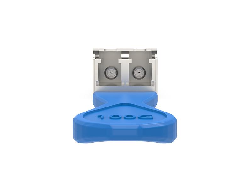 このモジュールは、中心波長1311nmの1チャネル光信号を内蔵し、100Gbpsのデータレートで動作します。このモジュールは、2チャネルの53Gbps(PAM4)電気入力データを1チャネルの106Gbps(PAM4)光信号に変換し、また1チャネルの106Gbps(PAM4)光信号を2チャネルの53Gbps(PAM)電気出力データに変換できます。光インターフェースにはデュプレックスLCコネクタを採用しています。高性能冷却EMLトランスミッタと高感度PINレシーバは、最大10kmリンクの100ギガビットイーサネットアプリケーションにおいて優れた性能を発揮します。
