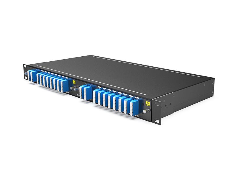 デュアルファイバー 16CH C21-C36 DWDM MUX DEMUX、1310nm、モニターおよびEXPポート、LC/UPC、LGXボックス、2スロット1Uラック付き