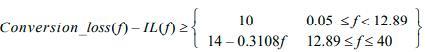 RLcc(f)≥1.8 0.05 ≤f ≤40 GHzの場合、fはGHz単位の周波数 |
