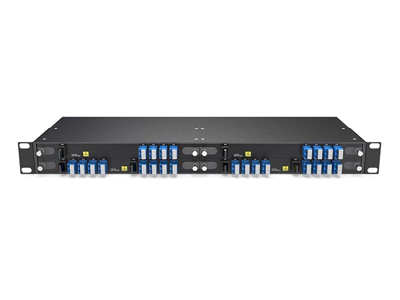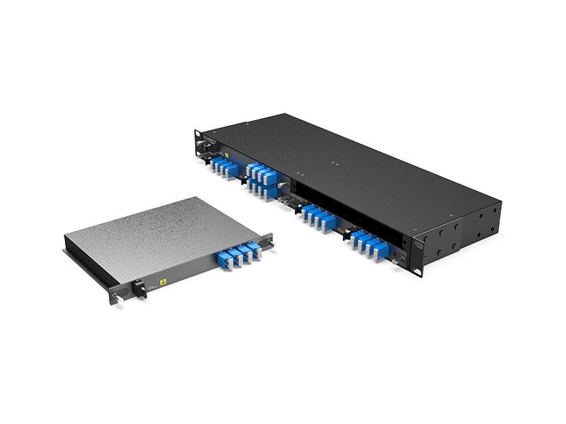 4つのブレークアウトモジュールをホストする1RUシャーシ |