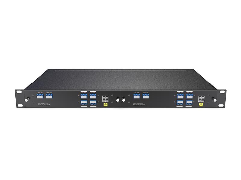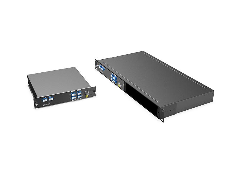 シングルファイバー 4CH 8波長 C21-C28 DWDM MUX/DEMUX、EXP、1310nm、モニターポート、LC/UPC、LGXボックス、2スロット 1Uラック付き