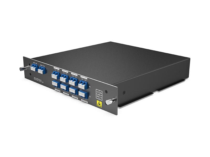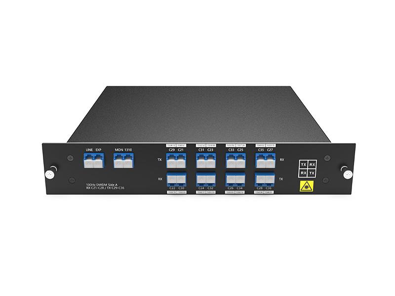 8ch(16波)DWDM MUX/DEMUXはFIBERWDMによって設計され、ペアで使用され、A面の波はRX C21〜C28(1560.61nm〜1554.94nm)、TX C29〜C36(1554.13nm〜1548.51nm)です。B面の波はRX C29〜C36(1554.13nm〜1548.51nm)、TX C21〜C28(1560.61nm〜1554.94nm)です。DWDM増幅器およびDCM装置と結合して、8ch DWDM転送システムは1本の光ファイバーで長距離伝送をサポートできます。